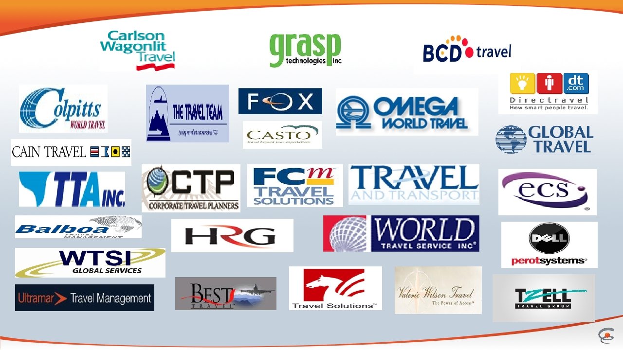 Complete Suite of Services v Customization of reporting - Timeline of commissions - Reporting and analysis customized - Comparison of estimated to actual commissions - Identification of non-commissioned bookings - Ranking of commissions paid by operators based on history v Strong marketplace presence - Carlson Wagonlit, BCD, HRG and American Express - Contacts with major hotel operators - Over 200 Small to mid-size agencies - Partnerships with ECS, WPS, Pay mode, Commtrak and TACS