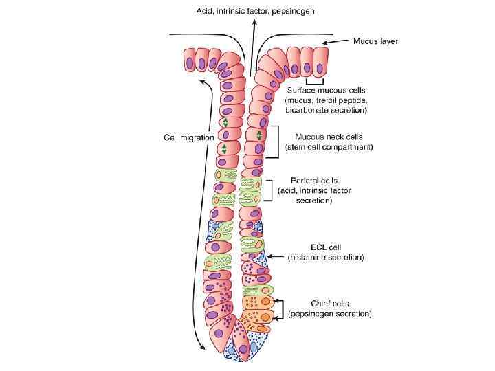 Циметидин n. vagus G М 3 + Гаст-+ рин М 2 D - М 1 М 3 + HCl Сомат Гист Н 2 оастатин мин Энтерохромаффино. Париетальная подобная клетка