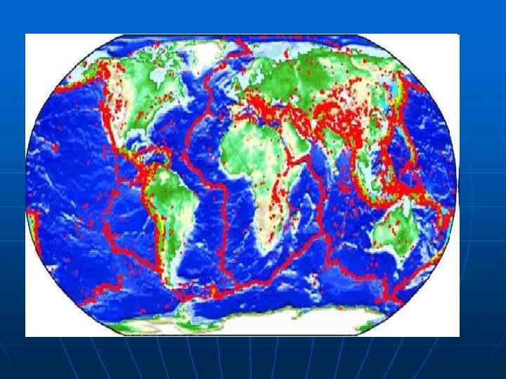 n n n Все сейсмоактивные регионы имеют примерно одинаковую протяженность (около 3 тыс. км), обусловленную размерами древних и современных зон субдукции, расположенных по периферии океанов, и их орогенических реликтов на континентах. Преобладающее число очагов землетрясений сосредоточено в верхней части земной коры на глубинах до 15 -40 км. Землетрясения с очагами на глубинах до 650700 км происходят в Курило-Камчатской зоне субдукции. С глубиной залегания очагов от 70 до 300 км землетрясения проявляются, в основном, за пределами России: Восточные Карпаты (Румыния, зона Вранча, глубина до 150 км); Центральная Азия (Афганистан, зона Гиндукуша, глубина до 300 км); Большой Кавказ; центральная часть Каспийского моря (до 100 км и глубже).