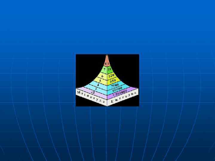 Соотношение глубины очага, магнитуды и бальности n n n h, км Магнитуда 5 6 7 8 10 7 8 -9 10 11 -12 20 6 7 -8 9 10 -11 40 5 6 -7 8 9 -11