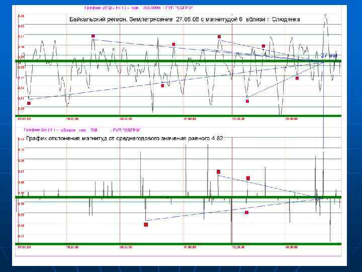 n n Функционирует в автоматизированном режиме электронный банк данных ГГД мониторинга, который содержит всю информацию многолетних наблюдений. Он обеспечивает быстрый поиск данных за любой период наблюдений и автоматизированное построение картографической основы для оценки геодинамической обстановки на различных этапах сейсмотектонической активизации, развития процессов подготовки землетрясений (по различным регионам и различным очагам землетрясений); Региональная, наблюдательная сеть ГГД мониторинга находится на завершающем этапе оснащения автоматизированными регистрирующими комплексами и средствами телеметрии, обеспечивающими передачу информации в цифровом виде в режиме реального времени непосредственно с пунктов наблюдений в центры ее обработки и анализа.
