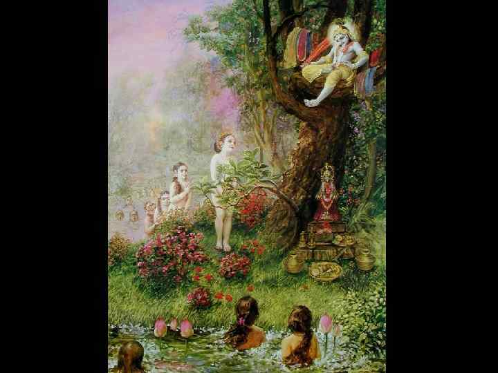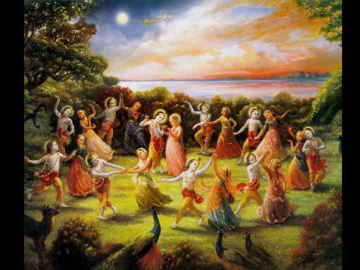 TEXT 11 (sarvato-bhadraù) räsävahä häva-särä sä laläsa sa-lälasä baläramä mära-läva-häsa-mädadamäsahä That handsome Deity, the initiator of the räsa dance, who gains strength from the coquettish gestures of women, sported wonderfully. Filled with amorous desire and taking pleasure in His own strength, He wouldn’t tolerate being subdued by anyone else because He was intoxicated with the pride of youth and His smiles and