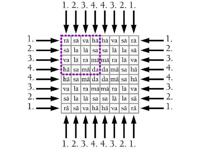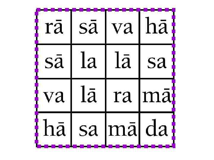 sarvato-bhadraù (“good on every side”) The following verse reads the same backwards and forwards as well as upwards and downwards. uu