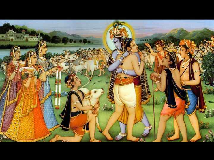 TEXT 9 (Cow Urine Formation) sä malla-raìge rämeñöä phulla-särä mud-edhitä çrama-néra-dharä tuñöä ballavé-räsa-devatä sä—that; malla—wrestling; raìge—in the arena; rämä—by women; iñöä—desired; phulla—blossomed; särä—strength; mud—due to delight; edhitä—increased; çrama—from fatigue; néra—perspiration; dharä—bearing; tuñöä—satisfied; ballavé— with the cowherd girls; räsa—of the räsa dance; devatä— presiding Deity. In the wrestling arena, that presiding Deity of the räsa dance with the gopés became satisfied. He was desired by all the women there, His strength had blossomed, He was elated, and He was perspiring due to fatigue.