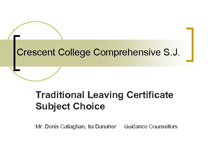 Crescent College Comprehensive S. J. Traditional Leaving Certificate Subject Choice Mr. Denis Callaghan, Ita Danaher Guidance Counsellors