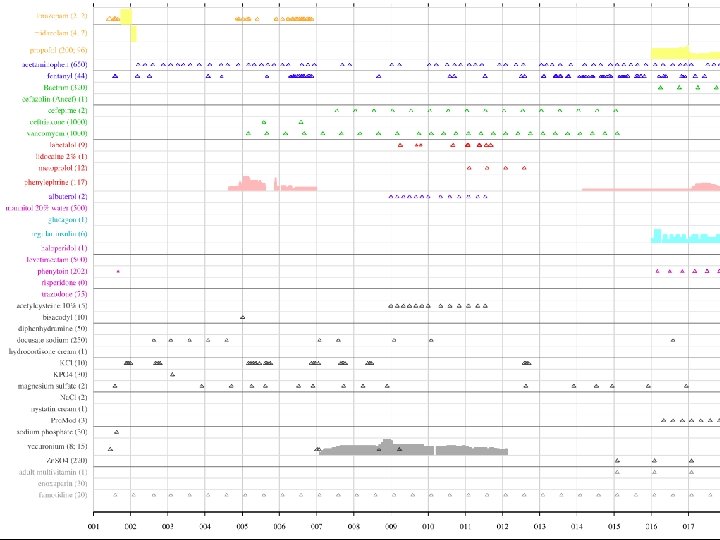 Novel Data Visualization Tools • Viewing large amounts of data in clinically useful way • Medications and events • Compressed time scales • Physiological “signatures”