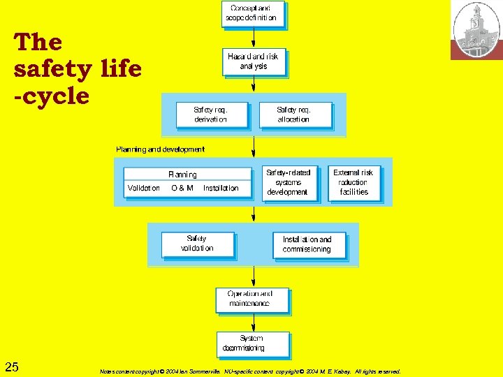 The safety life -cycle 25 Notes content copyright © 2004 Ian Sommerville. NU-specific content copyright © 2004 M. E. Kabay. All rights reserved.