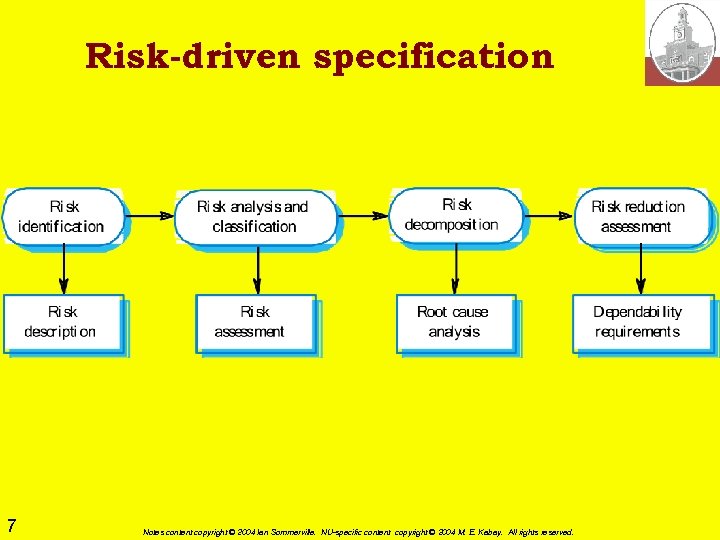 Risk-driven specification 7 Notes content copyright © 2004 Ian Sommerville. NU-specific content copyright © 2004 M. E. Kabay. All rights reserved.