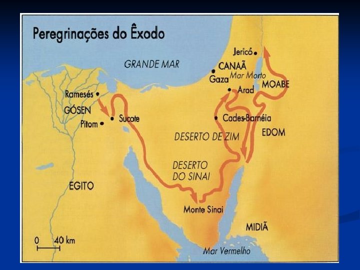 HEBREUS NO EGITO n Jacó muda-se para o Egito → 1880 a. C. n 430 anos de escravidão. n Nascimento de Moisés → 1530 a. C. n Em 1490 a. C. Moisés foge para Midiã. n 1450 a. C. encontro com Deus na sarça ardente. n n Cordilheira do Horebe → Monte Sinai. Êxodo → por volta de 1450 a. C.