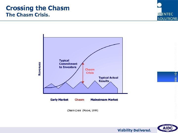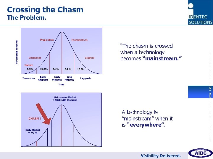 Crossing the Chasm The Chasm Crisis. AIDC Strategic RFID Workshop 2009 / © IDENTEC SOLUTIONS AG 2 Chasm Crisis (Moore, 1999) Organized by Visibility Delivered.
