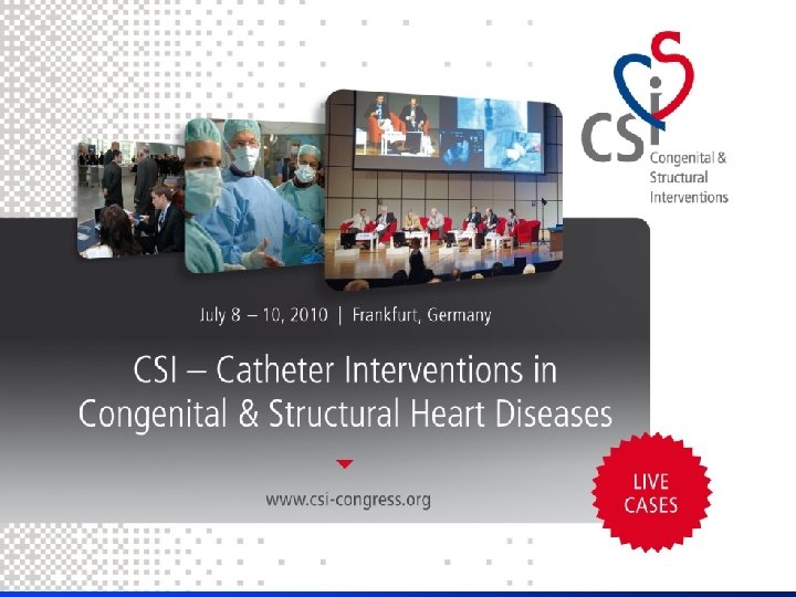 DISCLOSURES Horst Sievert, MD Consulting Fees – Access. Closure, Inc. , AGA Medical Corporation, Angiomed, Ardian, Inc. , Arstasis, Inc. , Avinger, Bridge. Point Medical, Cardio. Kinetix, Inc. , Cardio. MEMS Inc. , Coherex Medical, Inc. , CSI Medical, Endo. Cross, Boston Scientific Corporation, ev 3, Inc. , Flow. Cardia, Inc. , W. L. Gore & Associates, Inc. , Abbott Vascular, Lumen Biomedical, Kensey Nash Corporation, Kyoto Medical, NDC, NMT Medical, Inc. , OAS, Occlutech, Osprey Medical, Inc. , Ovalis, Inc. , Pathway Medical Technologies, Inc. , Pfm Medical, Inc. , Pendra. Care, Percardia Inc. , Remon Medical Technologies, ROX Medical, Sadra Medical, Sorin Group, Spectranetics, Square One Medical, Viacor, Inc. , St. Jude Medical, Medinol Ltd. , Lutonix, Inc. Grants/Contracted Research – Abbott Vascular, Access. Closure, Inc. , AGA Medical Corporation, Angiomed, Boston Scientific Corporation, Cardio. Kinetix, Inc. , Co. Aptus Medical Corporation, Cordis, a Johnson & Johnson company, CSI Medical, Edwards Lifesciences LLC, ev 3, Inc. , W. L. Gore & Associates, Inc. , Kensey Nash Corporation , Mind Guard, NDC, Neovasc, NMT Medical, Inc. , Percardia Inc. , Sorin Group, St. Jude Medical, Terumo Medical Corporation, Top. Spin Medical Ltd. , St. Jude Medical, Lumen Biomedical Ownership Interest (Stocks, Stock Options or Other Ownership Interest) – Cardio-Kinetics Inc. , Access. Closure, Inc. , Co. Aptus Medical Corporation, Lumen Biomedical, Cierra I intend to reference unlabeled/ unapproved uses of drugs or devices in my presentation. I intend to reference PFO, ASD devices, carotid stents, and EPD.