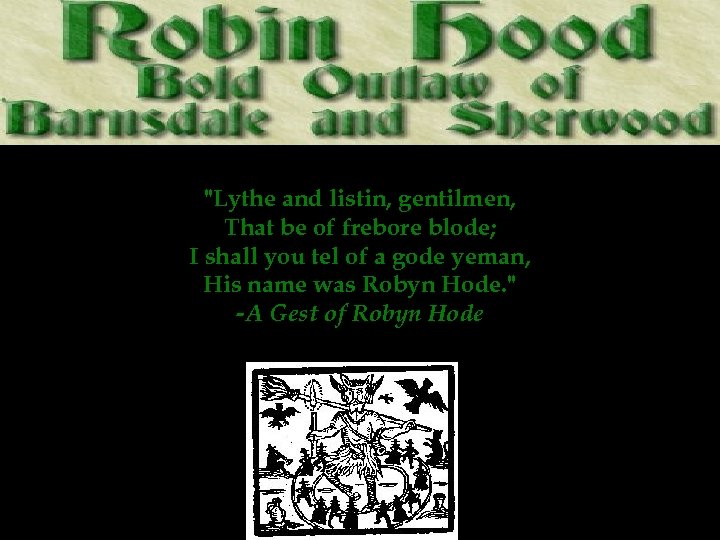 "Lythe and listin, gentilmen, That be of frebore blode; I shall you tel of a gode yeman, His name was Robyn Hode. " -A Gest of Robyn Hode