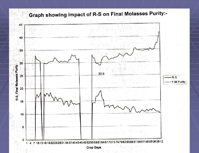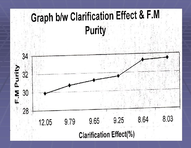 Impact of slurry on Final Molasses Purity S. No Season Purity of FM Type of slurry machine used 1. 2008 – 2009 33. 736 Conventional machine with porclain balls 2. 2009 – 2010 32. 865 Slurry machine with SS rods 3. 2010 – 2011 31. 811 -do- 4. 2011 – 2012 31. 779 -do-