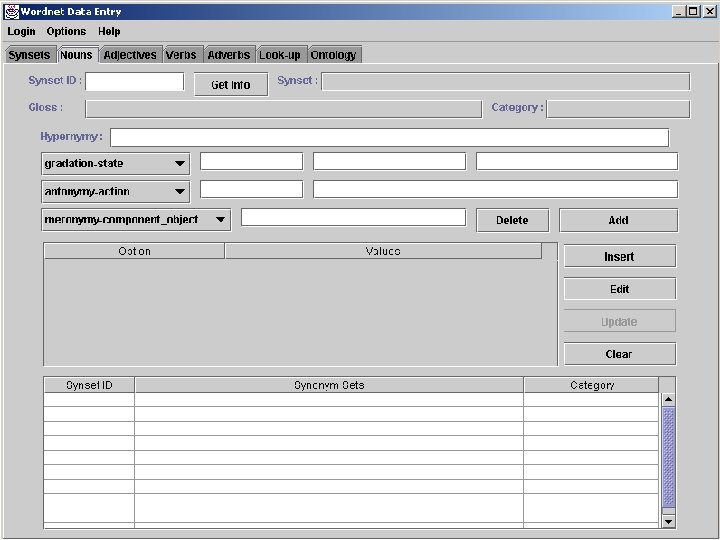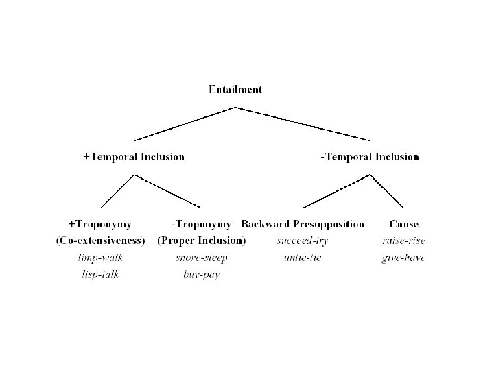 Wordnet defines an ontology earthquake, temblor, seism -- => geological phenomenon - => natural phenomenon - => phenomenon -Property inheritance possible. Important for sense disambiguation Ontology is shallow for non-noun POS.