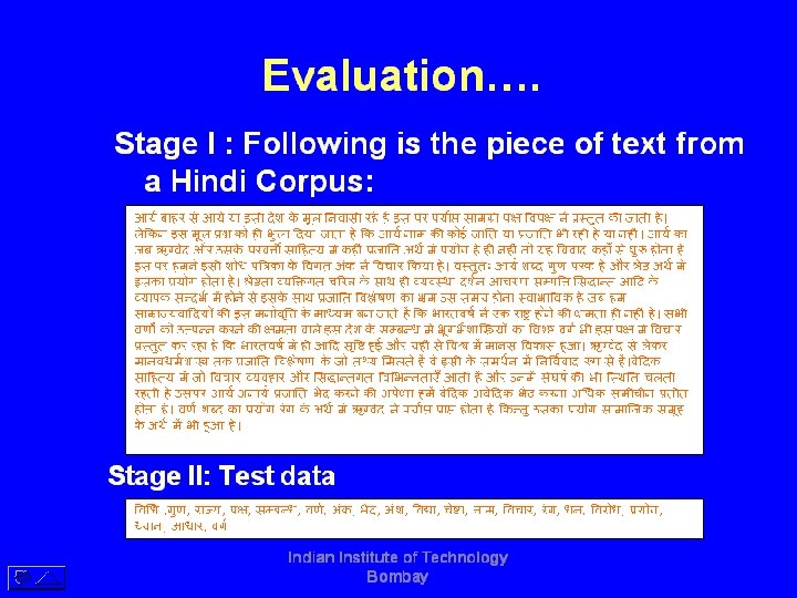 Evaluation • Presently, the system disambiguates nouns only. • The test corpora has been taken from CIIL, Mysore. • The system has been tested on corpus from 8 domains and each corpus containing around 2000 words on an average.