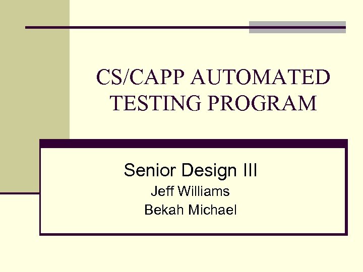 CS/CAPP AUTOMATED TESTING PROGRAM Senior Design III Jeff Williams Bekah Michael