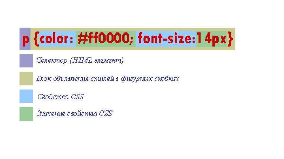 Цвет • #ff 0000 - шестнадцатеричное значение цвета RGB. • red - именное значение цвета. • RGB(255, 0, 0) - значение цвета RGB.
