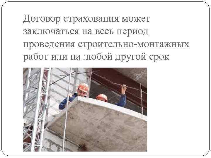 Договор страхования может заключаться на весь период проведения строительно-монтажных работ или на любой другой срок