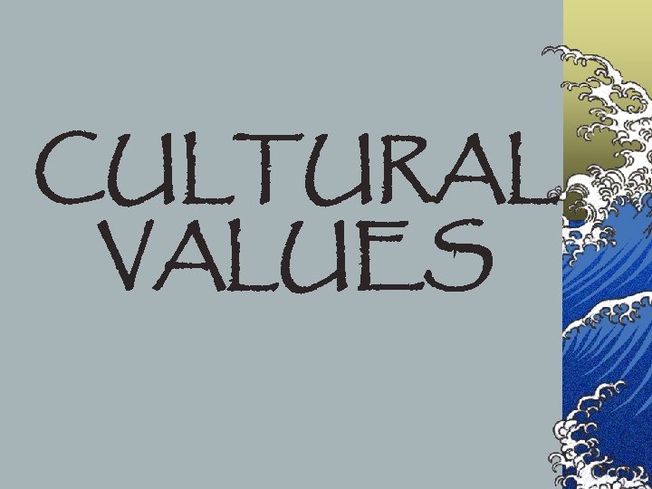 CULTURAL VALUES