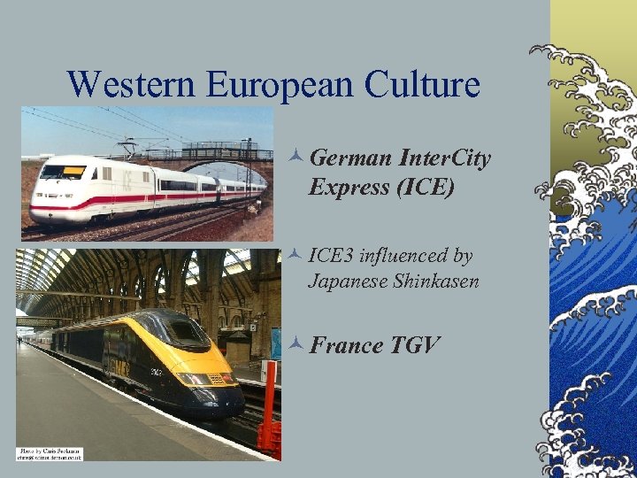 Western European Culture © German Inter. City Express (ICE) © ICE 3 influenced by Japanese Shinkasen © France TGV