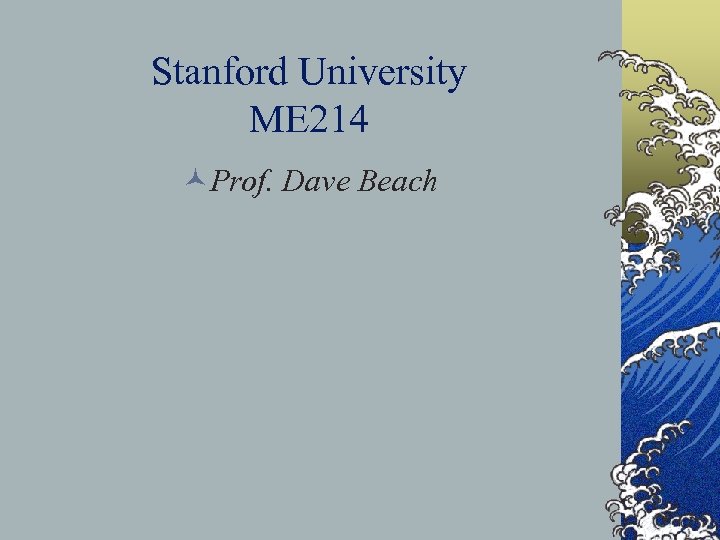 Stanford University ME 214 ©Prof. Dave Beach