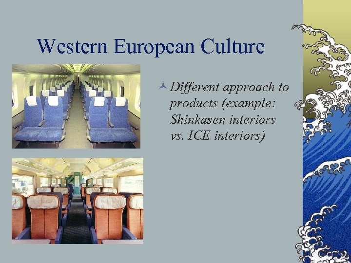 Western European Culture © Different approach to products (example: Shinkasen interiors vs. ICE interiors)