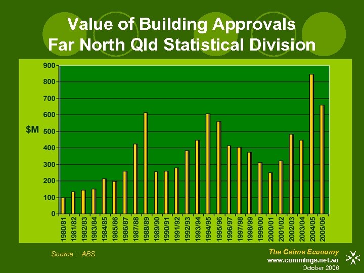 Value of Building Approvals Far North Qld Statistical Division Source : ABS. The Cairns Economy www. cummings. net. au October 2006