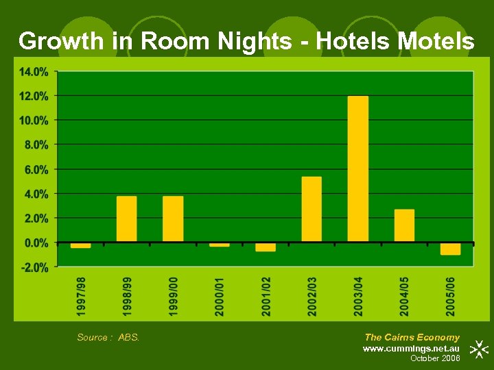 Growth in Room Nights - Hotels Motels Source : ABS. The Cairns Economy www. cummings. net. au October 2006