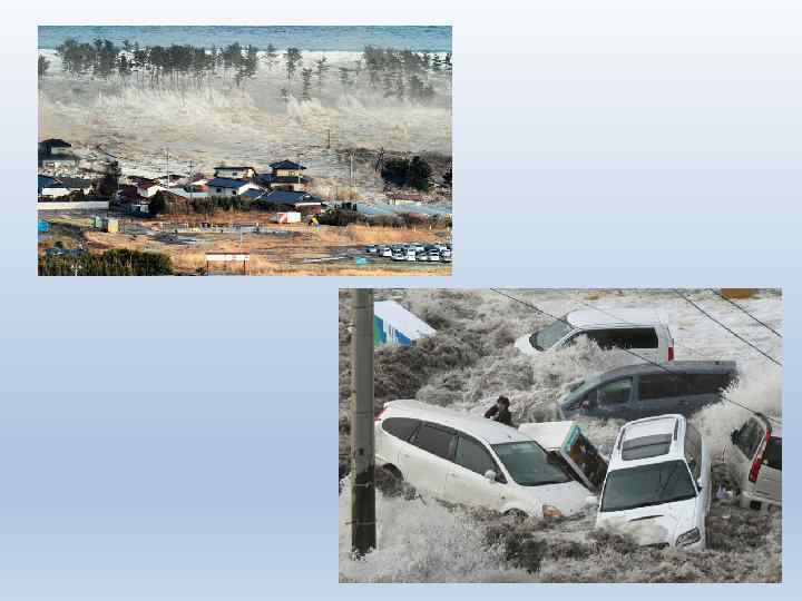 Последствия землетрясения • • • Сильные цунами с высотой более 3 метров, наблюдавшиеся после землетрясения в 14: 46 JST: 15: 12 JST — Камаиси — 6, 8 м 15: 15 JST — Офунато — 3, 2 м или выше 15: 20 JST — Исиномаки — 3, 3 м или выше 15: 21 JST — Мияко — 4, 0 м или выше 15: 21 JST — Камаиси — 4, 1 м или выше 15: 44 JST — Эримо — 3, 5 м 15: 50 JST — Сома — 7, 3 м 16: 52 JST — Оараи — 4, 2 м 11 марта 2011 — Сендайское землетрясение и цунами вблизи острова Хонсю, Япония (магнитуда 9, 1), по данным полиции Японии на 14 апреля 2011 погибло 13 439 человека, 14 867 человек числятся пропавшими без вести