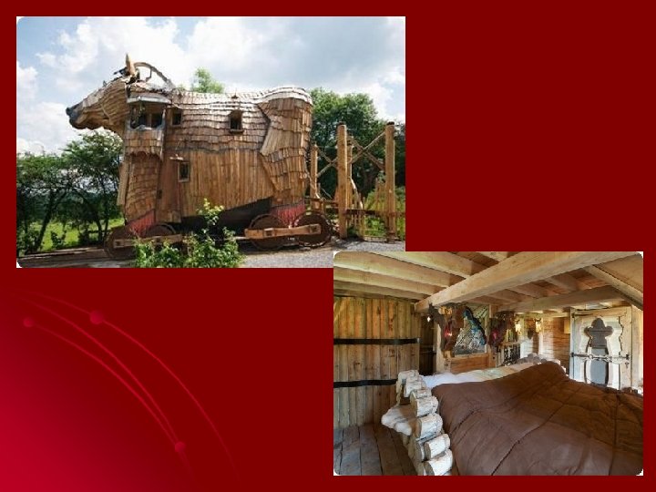 6. La Balade des Gnomes (Durbuy, Belgique) l Un gîte de 10 chambres aux thèmes de la nature et du fantastique. D’où la présence d’un immense cheval de Troie tout en bois.