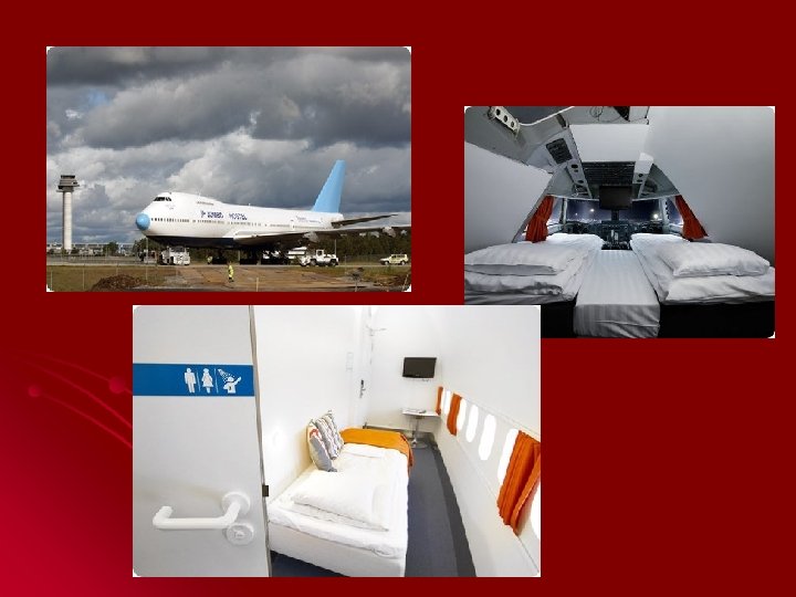 1. Jumbo Hostel (Uppsala, Suède) l Un Boeing 747 transformé en hôtel sur le tarmac de l’aéroport de Uppsala, à 70 km au nord de Stockholm. Pour 375 euros, vous pourrez même dormir dans le cockpit.