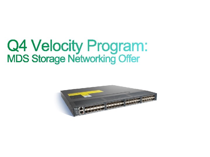 New! • Discounted MDS 9148 with 32 ports and (32) 8 Gbps SFP+’s when ordered with any UCS purchase (including Fabric Interconnects) • Must be ordered with a UCS system (N 10 -S 6100/6120 or N 10 S 6200/6140 Fabric Interconnect) • Customers purchasing stand-alone blades or rack-mount servers do not qualify • The MDS bundle and UCS system must be ordered together on the same Sales Order • Not eligible for VIP; Not stackable with DC Accelerator (DCAP) • DSA-Eligible for Q 4 only! • The bundle SKU has been pre-discounted by 21% • Cisco Direct and 2 -tier channel only (not available through our OSM partners) • Offer Expires July 30, 2011