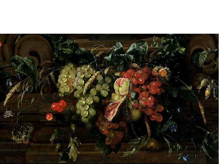 Ян Давидс де Хем Предположительно ученик Бальтазара ван дер Аста. Некоторое время художник работал в Лейдене, в 1635 г. вступил в антверпенскую гильдию художников и в следующем году стал гражданином Антверпена. Де Хем получил всеобщее признание благодаря своим великолепным изображениям цветов и фруктов. Детальность изображения вплоть до мельчайших деталей он соединял с блистательным выбором цветовой гаммы и утончённым вкусом в построении композиции. Он писал цветы в букетах и вазах, в которых часто порхают бабочки и насекомые, цветочные венки в нишах, окна и изображения мадонн в серых тонах, гирлянды фруктов, натюрморты с наполненными вином бокалами, виноградом и другими фруктами и продуктами.