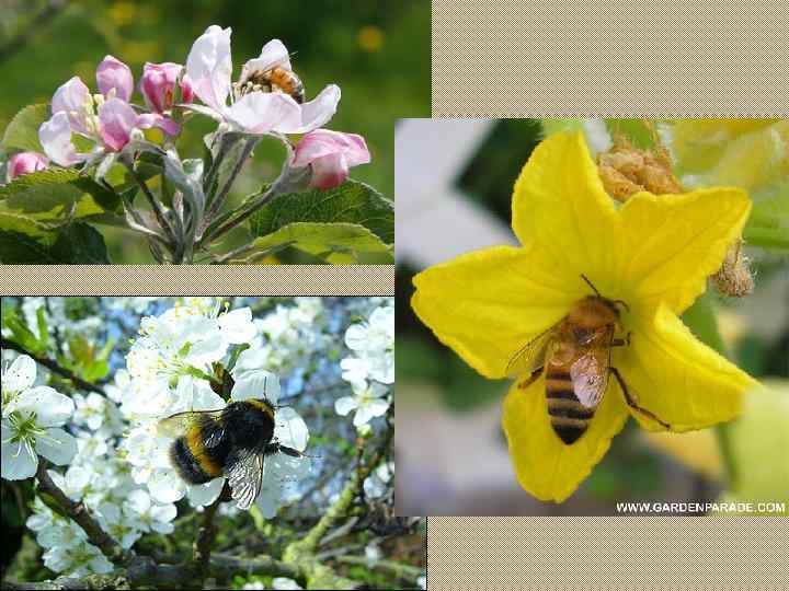 Собирая нектар, пчела переносит пыльцу с одного цветка на другой. Часть пыльцы осыпается и остается на соседних цветках.