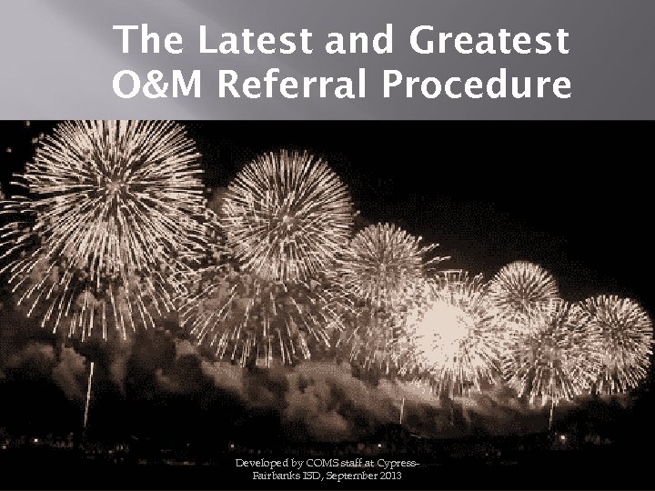 The Latest and Greatest O&M Referral Procedure Developed by COMS staff at Cypress. Fairbanks ISD, September 2013