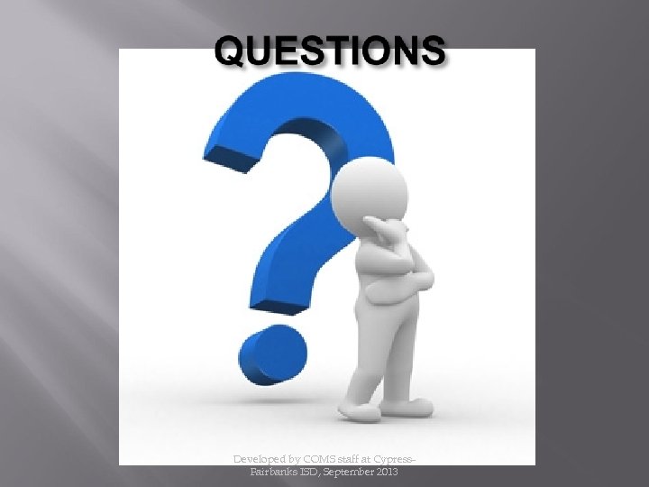 Developed by COMS staff at Cypress. Fairbanks ISD, September 2013