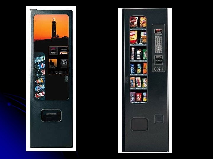 Vending Machines After our measurements we found out that the regular vending machines distrubited by companies would not fit through the door. l We decided to get smaller vending machines from Sams Club. l
