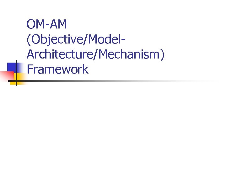 OM-AM (Objective/Model. Architecture/Mechanism) Framework