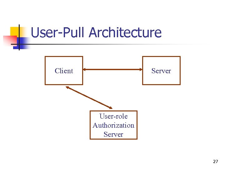 Server-Pull Architecture Client Server User-role Authorization Server 26