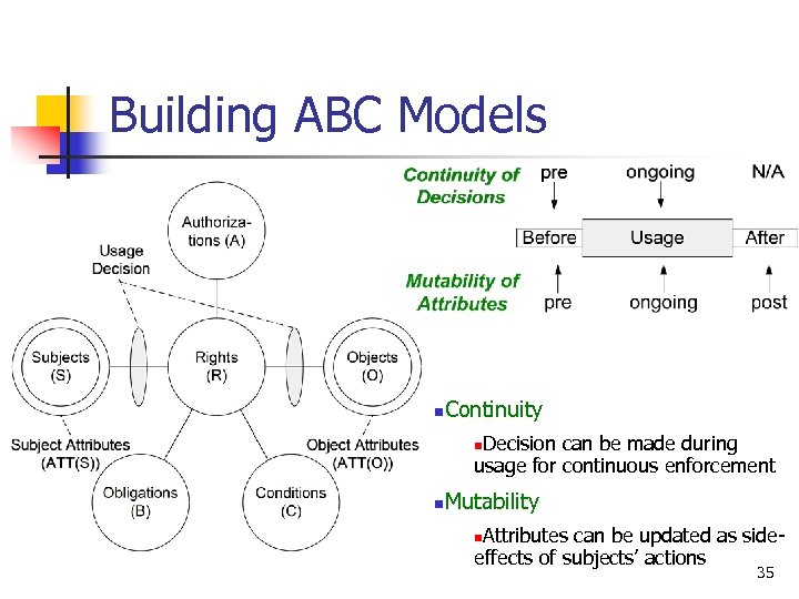 Building ABC Models n Continuity Decision can be made during usage for continuous enforcement n n Mutability Attributes can be updated as sideeffects of subjects’ actions n 35