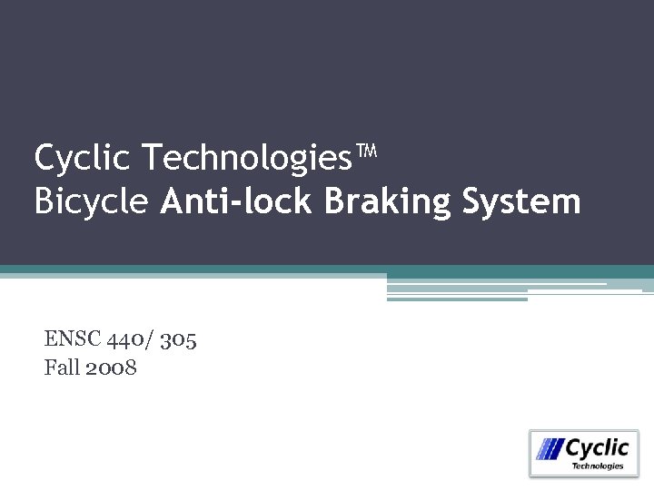 Cyclic Technologies™ Bicycle Anti-lock Braking System ENSC 440/ 305 Fall 2008