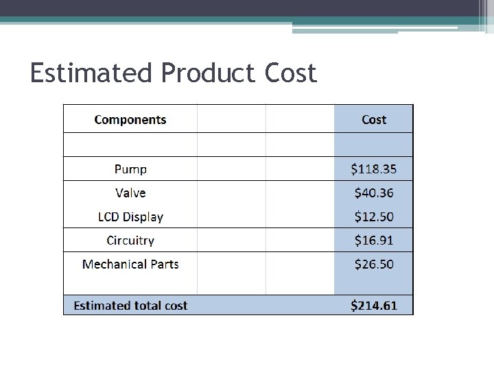 Estimated Product Cost