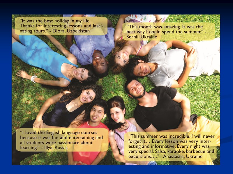 Do Something Different this Summer Learning through fun Personal development Sightseeing tours Beach and sea activities Sport activities Festivals and concerts Access to Campus facilities Friendly, international atmosphere