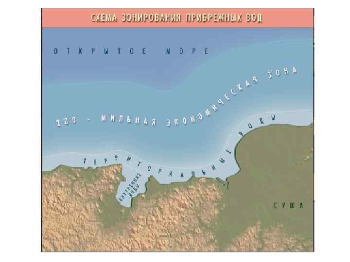 Исключительная экономическая зона Первые 15 стран мира по площади акваторий исключительных экономических зон (ИЭЗ), включая территориальные воды (ТВ) Страна Площадь ИЭС и ТВ, тыс. км 2 США 11 351 Франция Австралия Россия 11 035 8 148 7 566 Канада 5 599 Япония Новая Зеландия Великобритания Бразилия Чили Португалия Индия Мадагаскар Аргентина Китай 4 479 4 084 3 974 3 661 2 018 1 727 1 642 1 225 1 159 877