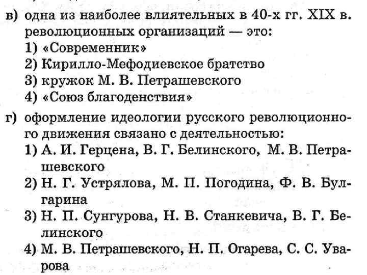 ОТВЕТЫ: А -2 Б - 3 В - 2 Г - 1 Д – 2, 4, 5 Ж - а) славянофилы, б) теория официальной народности З - а-1, 2, 3, 5 б-1, 2, 4 И – 1, 3, 5