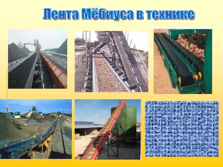 Лист Мёбиуса и техника Если у релейной передачи ремень сделать в виде ленты Мёбиуса, то его поверхность будет изнашиваться в два раза медленнее, чем у обычного кольца, в работе ремня принимает участие вся поверхность, а не только внутренняя ее часть, как у обычной ременной передачи.