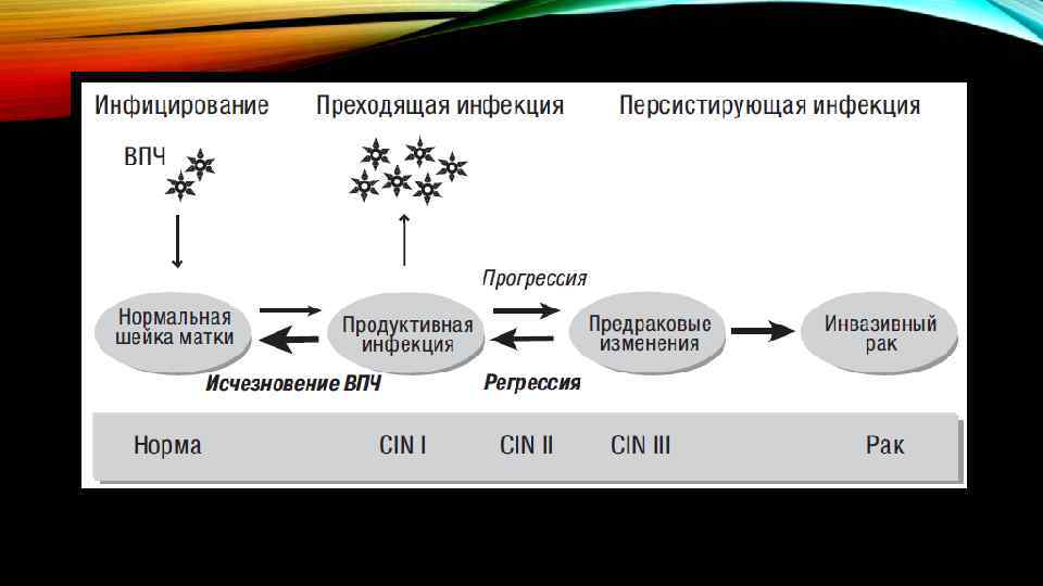 1. Здоровые клетки 2. CIN 1 5. Плоскоклеточный рак 3. CIN 2 4. CIN 3