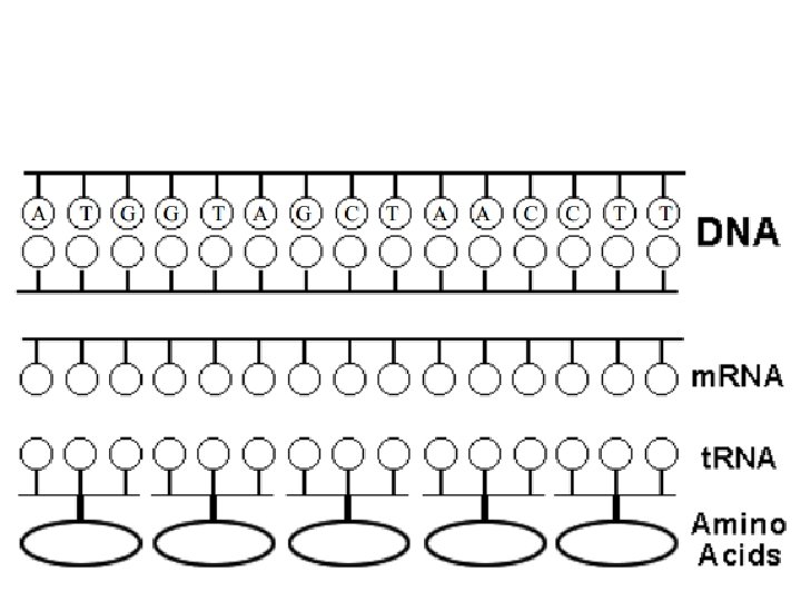 So what the heck? • Proteins are made in 3 steps: – DNA gets copied. (each nucleotide) – m. RNA transcribes – t. RNA transposes to ribosomes • Practice Start with DNA, transcribe to m. RNA, transpose to t. RNA = amino acids • ATC CGC GGG CTA AGT TTA AAA – DNA - m. RNA - t. RNA Amino Acids EVERY THREE NUCLEOTIDES CODES FOR AA.