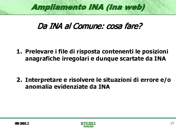 Da INA a Comune INA Web SCARICO SCARTI 09. 2012 TORINO 16