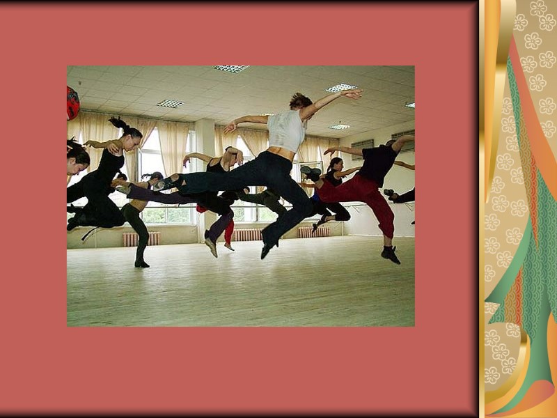 Виды танце-терапии - индивидуальная танце-терапия (индивидуальные сессии направлены на исследование ощущений и собственного тела клиента, установление внутреннего диалога со своим телом) -групповая танце-терапия (длинный групповой танец, групповая импровизация)- направлены на установление диалога не только с собой, но и окружающим миром
